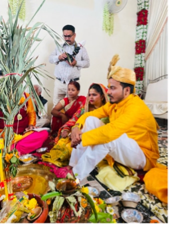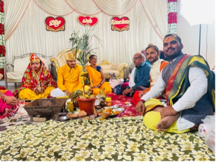 Brahma Vivah (Vedic Marriage): - Fixing the marriage of a girl with a suitable groom of the same class with the consent of both the parties is called 'Brahma Vivah'. Generally, after this marriage the girl is sent off after adorning herself with jewellery. Today's "arranged marriage" is a form of 'Brahma marriage'. This marriage is solemnized by our Pandit ji.